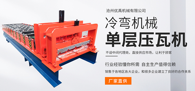 沧州优禹机械有限公司是生产、销售、安装、调试并提供压瓦机技术咨询为一体的现代化企业,主营设备包括轻钢龙骨机设备、压花机设备、光伏支架设备、双层三层彩钢压瓦机、阴角地槽设备、琉璃瓦树脂瓦设备、卷帘门设备、广告装饰扣板机、彩钢钢卷放料架、折弯机剪板机、分条机横压机、液压开卷机、打包箱快拼房设备、止水钢板鱼鳞网设备、CZU型钢机设备、车厢板设备、彩钢瓦设备、校平开平机设备、打拱机、楼承板设备、冷弯成型机、角钢成型机、围挡设备等,为大量客户提供了满意的解决方案, 并建立了长期的战略合作关系。并可根据用户要求进行设计制造,同时对用户进行指导、生产、安装、调试维修彩钢设备一条龙服务。